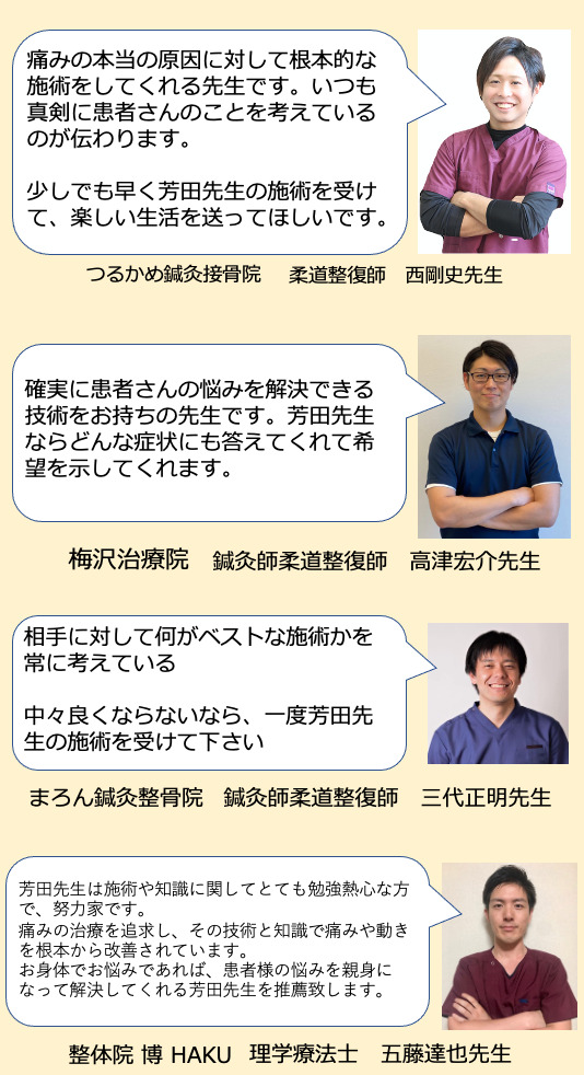 様々なプロから推薦される芳田院長のプロフィールと当院紹介